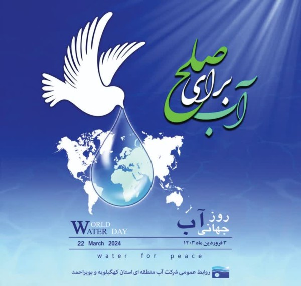 به گزارش روابط عمومی شرکت آب منطقه ای کهگیلوویه و بویراحمد، در پیام آرش مصلح، مدیرعامل شرکت آب منطقه ای استان آمده است:" روز جهانی آب مصادف با دوم یا سوم فروردین هر سال (۲۲ مارس) از سوی سازمان ملل نامگذاری شده و همه ساله شعاری از سوی بخش آب سازمان ملل برای این روز تعیین می شود. امسال (سوم فروردین 1403شمسی ، 22 مارس 2024 میلادی) نیز روز جهانی آب به نام «آب برای صلح» نامگذاری شده است که نشانگر نقش و تاثیرگذاری این ماده حیاتی بر همه شئونات و ابعاد زندگی جوامع انسانی دارد و در عین حال رسالت و وظیفه همه ما را در حفاظت و صیانت و مدیریت صحیح آن سنگین تر می نماید.